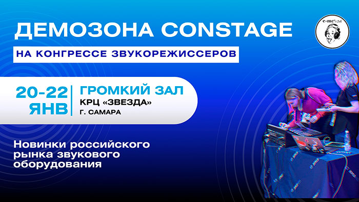 Компания Constage примет участие в двух значимых отраслевых мероприятиях в Самаре: Всероссийском конгрессе звукорежиссеров музыкальных программ и Конференции прокатных компаний.